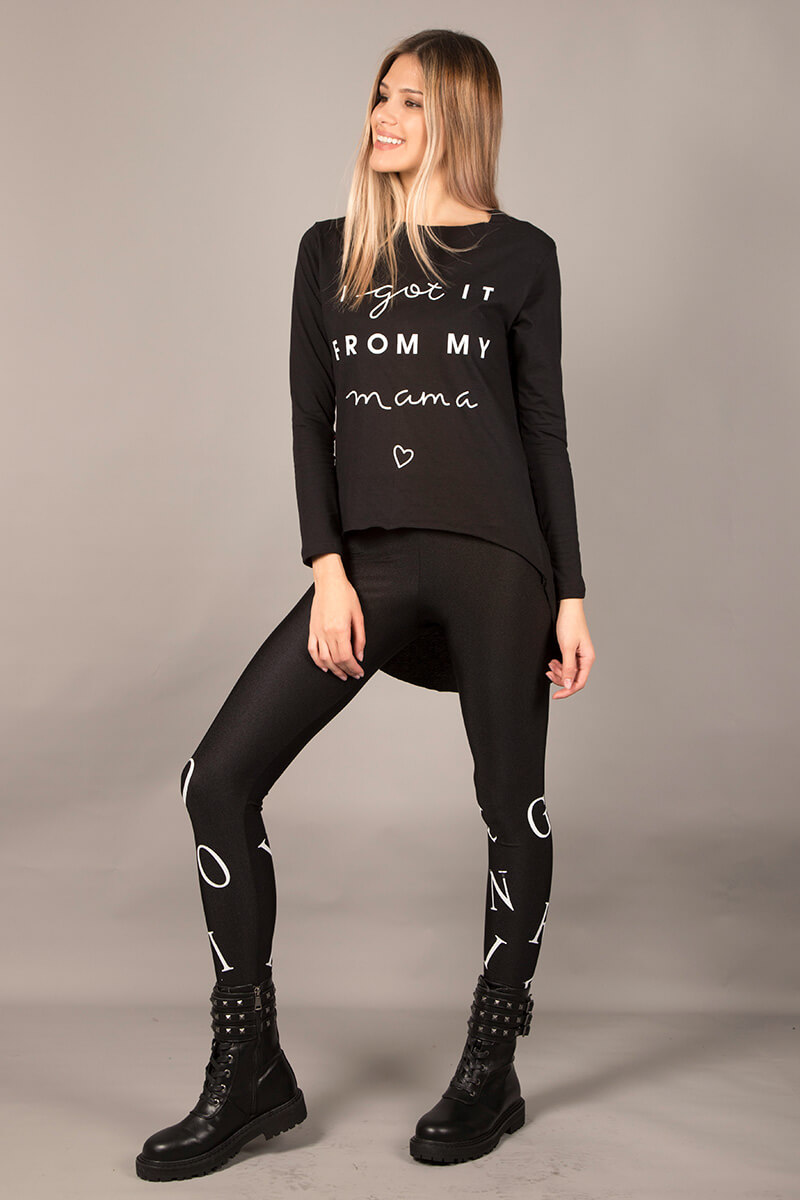 Λίκρα κολάν με λευκά γράμματα.