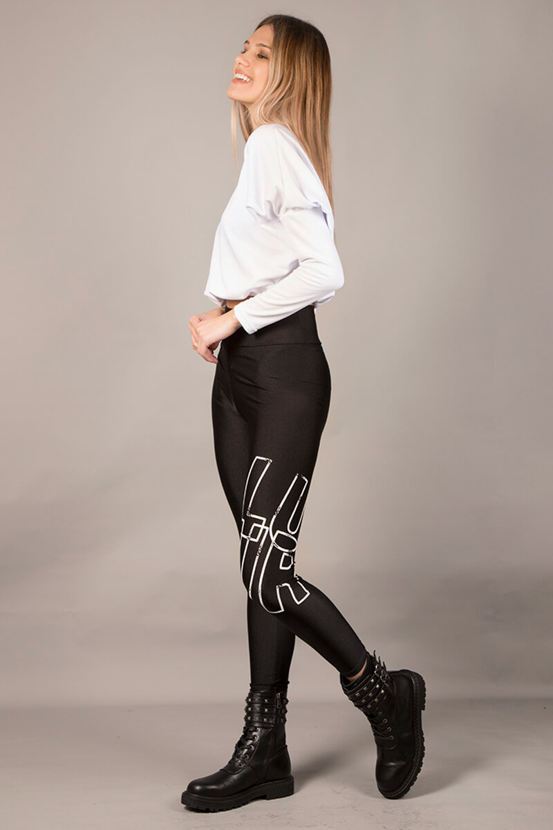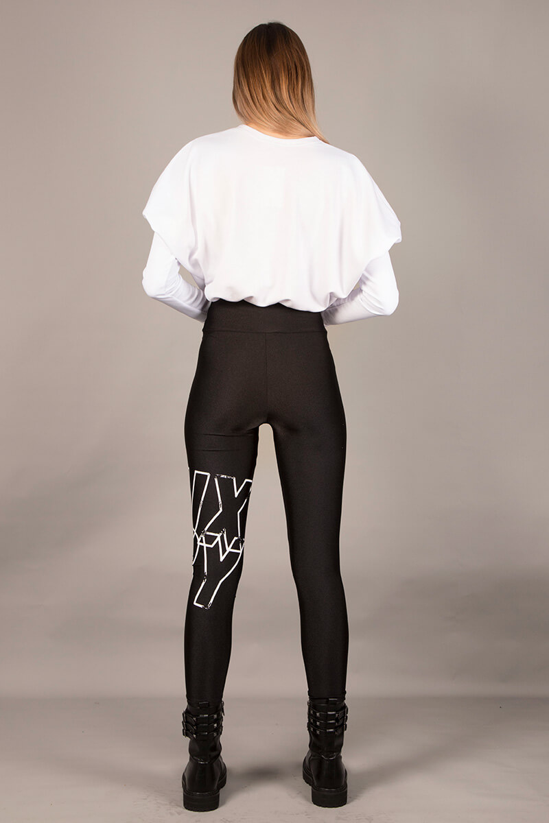 Λίκρα κολάν με σχέδιο από λευκά γράμματα.